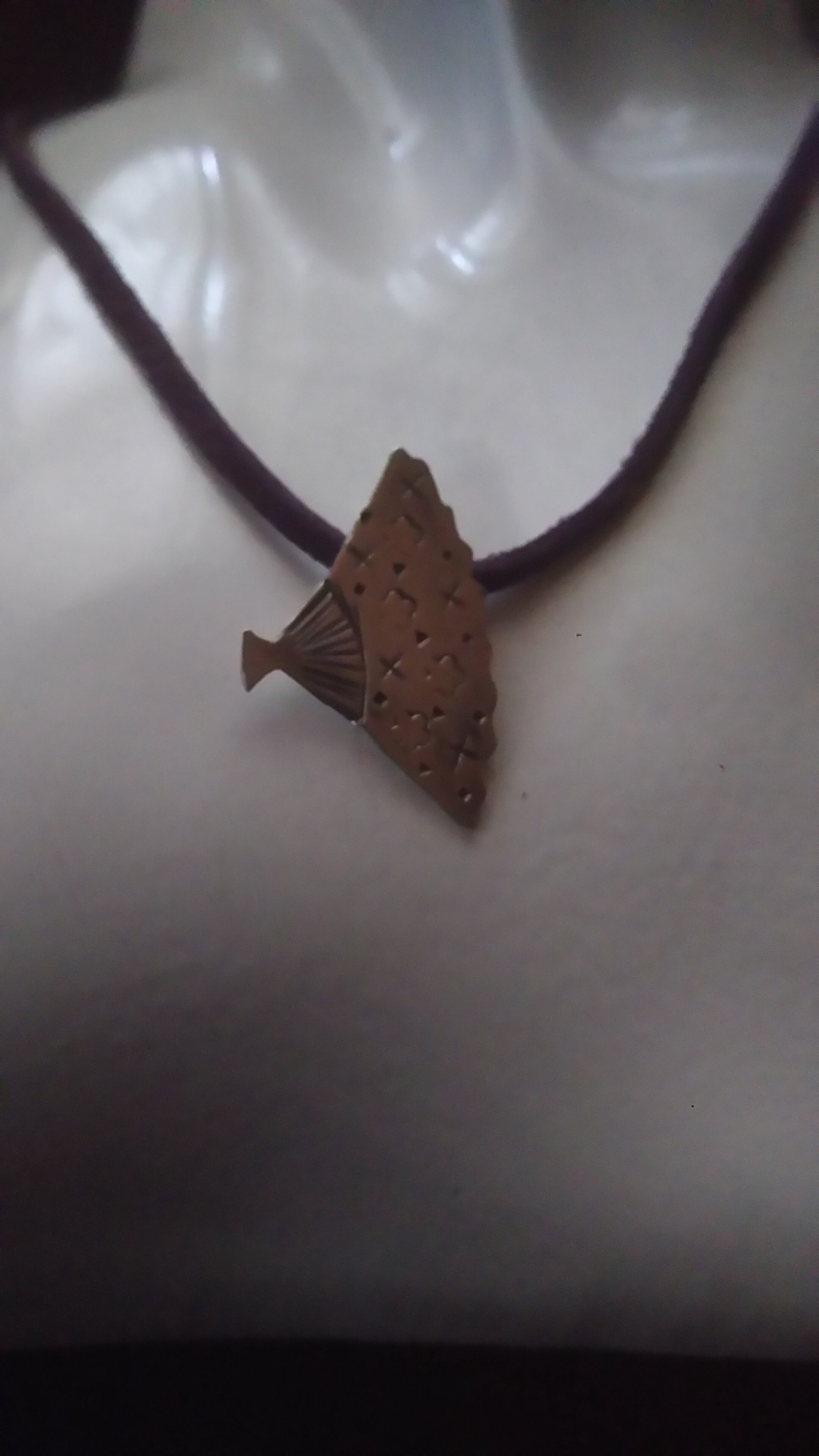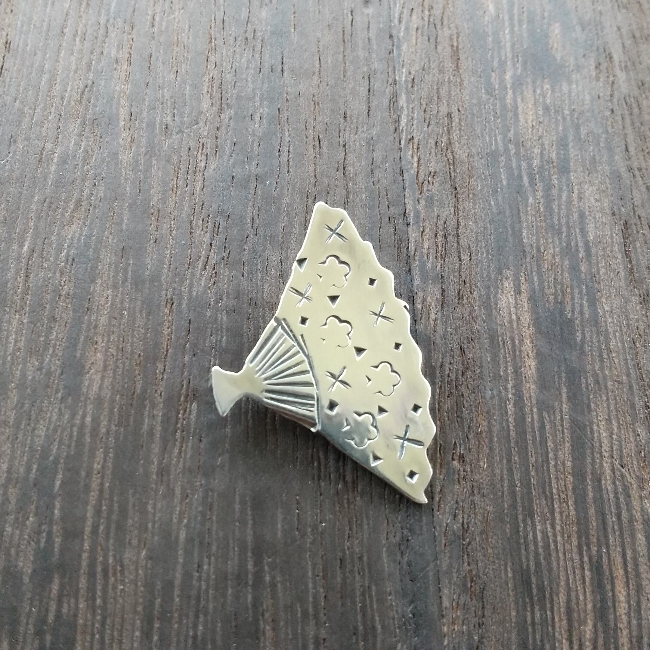 その扇子をネイティブスタイルのスタンピングと織り混ぜて、デザインしてペンダントにしてみました。